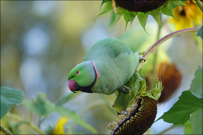 Community: Halbandsittich auf einer Sonnenblume - Jahreszeiten - Galerie - Community