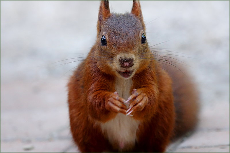 Buddha sagt: „Lächle und die Welt verändert sich“. Das Eichhörnchen scheint es vorzumachen