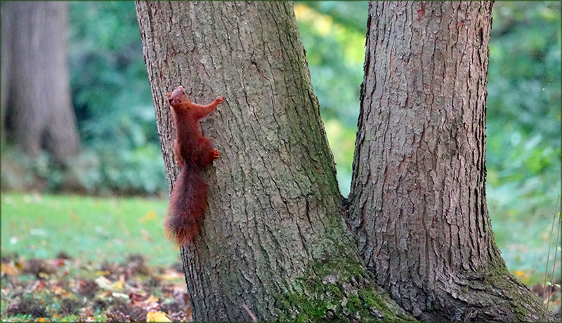 So ein Bild ist ja eine Kopie von etwas real Dagewesenem. Das Schöne dabei ist, dass man sich in die Lage versetzen kann, wie es der Fotograf draußen in der Natur wirklich erlebt hat, das heißt, man kann sich die Geräusche und die Witterung, also die Luftverhältnisse vorstellen und die Gerüche, vielleicht nicht so exakt aber darauf kommt es gar nicht an. Diese Bilder sind sehr hilfreich, wenn man nicht die Gelegenheit hat in die Natur zu gehen, zum Beispiel wenn man in der Stadt lebt, ansonsten sind sie jederzeit ein Geschenk an den Betrachter. Dieses Bild hier ist sehr schön getroffen, das Eichhörnchen beim Erklimmen eines Baumstammes und die Lichtverhältnisse.