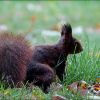 Freiheit, tun und lassen was man will (soweit es niemand schadet) so wie hier das Eichhörnchen, ist mit Geld nicht zu bezahlen. Auch hier die klaren Wasserperlen an den Grasspitzen und die bunten Herbstblätter verstreut auf der Wiese und der verschwommen grünbläuliche Hintergrund auf der oberen Hälfte des Bildes, vermitteln eine sagenhafte Oktoberstimmung.