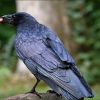 Ein schönes Tier mit glänzendem Federkleid, und symbolisch zeigt es uns den Haselnusskern im Schnabel und sagt uns, dass wir die Schale aufbrechen sollen um zum Kern gelangen zu können. Der verschwommen grüne und helle Hintergrund bringt den Raben schön zur Geltung.