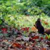 Ein sehr schönes Herbstfoto, diese schöne Mischung aus buntem Laub, grünem Pflanzenwuchs und hellgrünem Gras. Einige Pflanzen vom Sonnenlicht durchleuchtet und mittendrin das aufrecht sitzende Eichhörnchen, emsig am Futter knabbernd. Ein Bild voller Ruhe und Frieden.