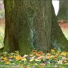 Ein wunderschönes Bild zum Beginn des Novembers. Sehr schön anzuschauen dieser mächtige Baumstamm im Vordergrund mit der von der Witterung grünen Rinde und zu Füßen das bunte Herbstlaub auf der Wiese. Reizvoll auch der schöne herbstliche Hintergrund. Der ganz oben in der rechten Ecke des Bildes sichtbare Passant, verlässt gerade diesen wunderschönen herbstlichen Schauplatz.