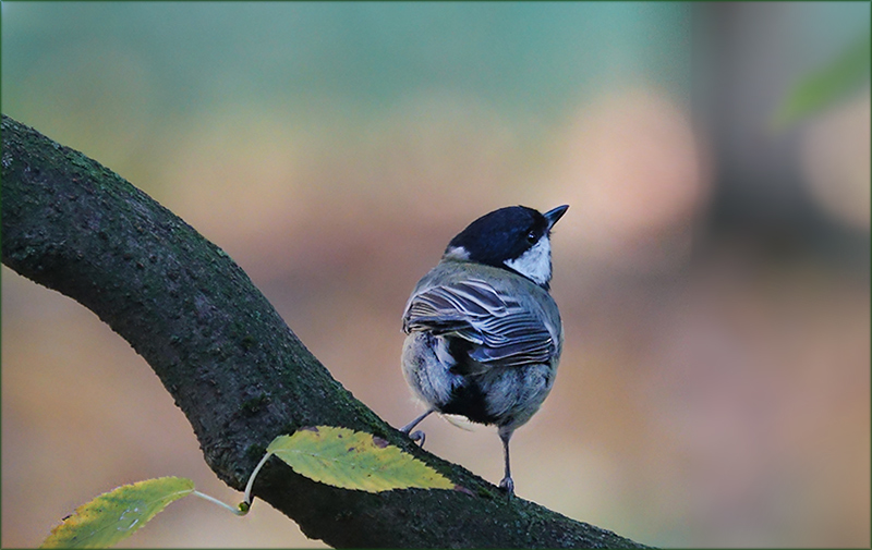 Auch mein Freund, die Meise. Eine sehr schöne Aufnahme mit dem Ast quer durch das Bild auf dem das Vögelchen steht, mit einer lieblichen Haltung. Auch noch schön die zwei fast grünen Blätter zu dieser Jahreszeit. Der zartbunte Hintergrund gibt dem Bild eine schöne Ansicht.