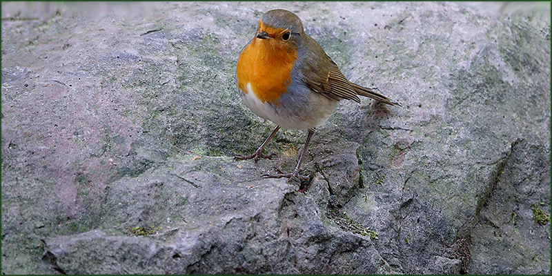 Süß das Rotkehlchen, aber das sind sie ja immer, soweit sie gesund sind. Dieser bläulichgraue Felsbrocken bringt das Tierchen schön zur Geltung.