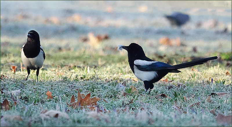 Community: Zwei Elstern auf der Wiese mit Raureif - Jahreszeiten - Galerie - Community