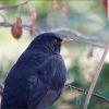 Sie sieht so lieblich und zutraulich aus, aber das sind sie auch, lieblich und zutraulich. Sie schaut wachsam, scheint auf etwas zu warten. Ein sehr schönes blau schimmerndes Federkleid. Dieser schöne weiß bis grün bunt gefleckte Lichthintergrund bringt die Amsel mit den Zweigen und dem welken Laub im Vordergrund schön zur Geltung.