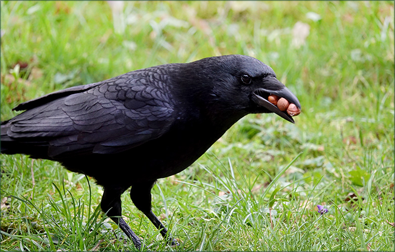 Interessant zu sehen, dass der Rabe soviel an Futter aufnimmt, wie er tragen kann, er handelt instinktiv. Sicher hat er schon oft genug erlebt, dass andere Tiere auch das Futter begehren. Oft sind in ihrer Nähe auch Elstern, die sehr schnell wenn die Raben mal nicht achtsam genug sind von dem Futter wegschnappen. Und die bekommen genug ab, um auch existieren zu können. Sehr schön getroffen. Auch sehr schön an Licht und Farbe.