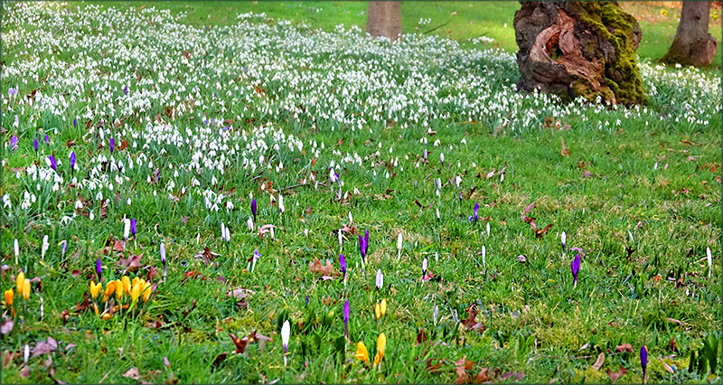 Frühlingswiesen sind beglückend schön. Hier kommt noch ein seltsam verwachsener bemooster Baumstumpf hinzu. Manchmal gibt es in der Natur recht merkwürdige Verwachsungen und Gebilde, auch das ist interessant zu sehen.