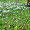 Eine romantische Blumenwiese rund um den alten Baumstamm.