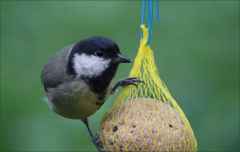 Mich berührt sehr der süße Blick der Meise, aber auch das Vögelchen in seiner Ganzheit, ich vemisse derzeit ihren Frühlingsruf. Das Tierchen hier auf dem Bild, hat mit dem Meisenknödel einen reich gedeckten Tisch gefunden. Sehr schön getroffen, voller Harmonie und Frieden. Auch sehr schön in Licht und Farbe.