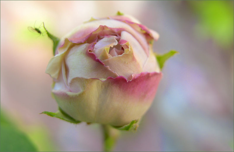 Wunderschöne zarte Farben, und ein Insekt fühlt sich auch angezogen, von den Farben oder vom Duft der Rose