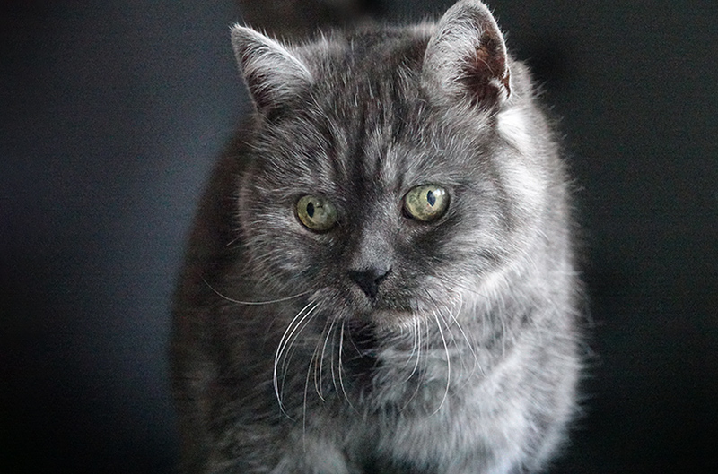 Ein sehr schönes Portrait, es wirkt auf mich allerdings mit technischen Hilfsmitteln leicht verändert, was aber auch an der Lichteinwirkung liegen könnte. Wie dem auch sei, ein liebliches Katzengesicht mit lieblich schauenden Augen. Ein sehr schöner Hell- Dunkelkontrast und voller Harmonie und Frieden.