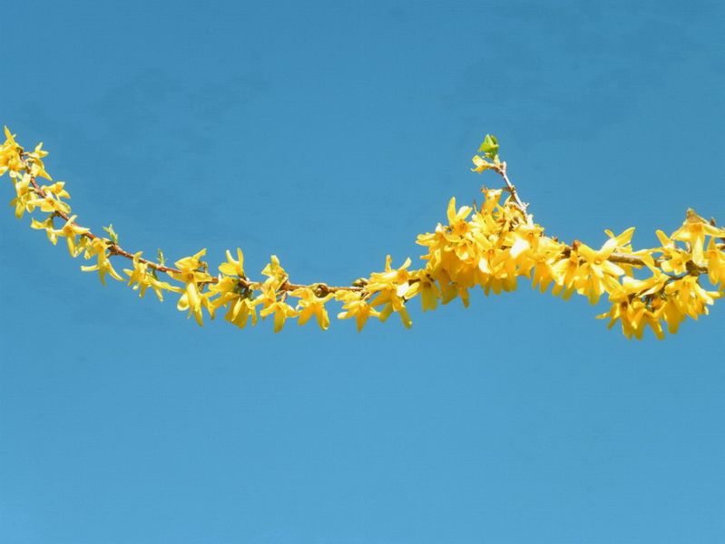 Forsythie umrahmt vom blauen Frühlingshimmel