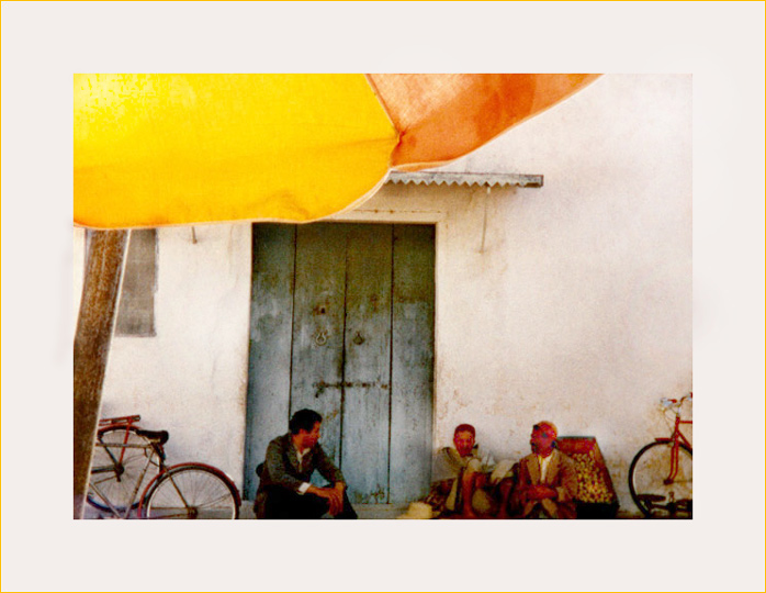 Ein Tourist unterhält sich mit zwei Tunesiern. Diese Aufnahme habe ich mit einer kleinen Pocketkamera gemacht. Aber ich denke die leichte Unschärfe hat durchaus auch einen eigenen Reiz.