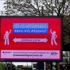 Bei mir wirkt die erste weiße Zeile auf dem hellblauen Hintergrund etwas blass, so hab ich gelesen: "Wenn Interview - dann mit Abstand!" Dann hab ich genauer hingeschaut, ist ja sehr farbenfroh das Plakat, und habe darüber nachgedacht.