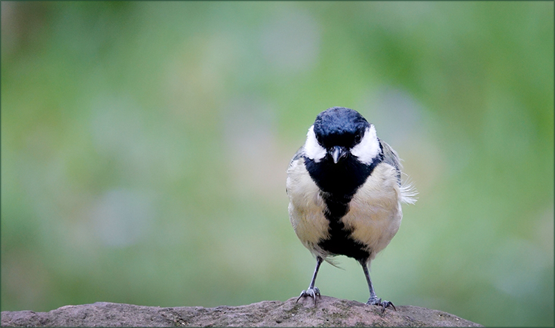 Unsere kleine Freundin die Meise, süß steht sie auf dem großen bläulichgrauen Steinbrocken, einige ihrer Federchen bewegen sich im Wind. Man muss sie einfach gern haben, das süße Tierchen. Der grünlich bis bläulich und violett gefleckte Hintergrund bringt sie schön zur Geltung. Sehr schönes Licht- Farbverhältnis.