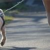 Ein sehr schönes und reizvolles Bild, eine Harmonie zwischen Mensch und Tier, gemeinsam joggen bei herrlichem Sonnenschein. Bewegung ist für beide ein gesundes Miteinander, und die frische Luft, wahrscheinlich zum Abend hin, vielleicht auch Vogelgesang, wirkt wohltuend auf Körper, Geist und Seele. Die Leine, die für den Hund eine Einschränkung seiner Freiheit bedeutet, wird hier lediglich zur Signalübertragung zwischen Mensch und Tier benutzt. Sehr schönes Licht- Schatten- Farbverhältnis.