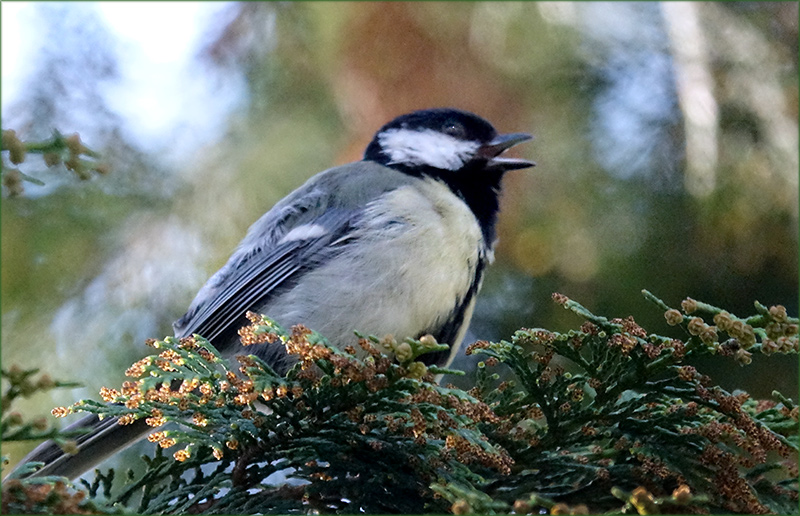 Ein wunderbares Naturfoto, die Kohlmeise ist wohl am Singen?