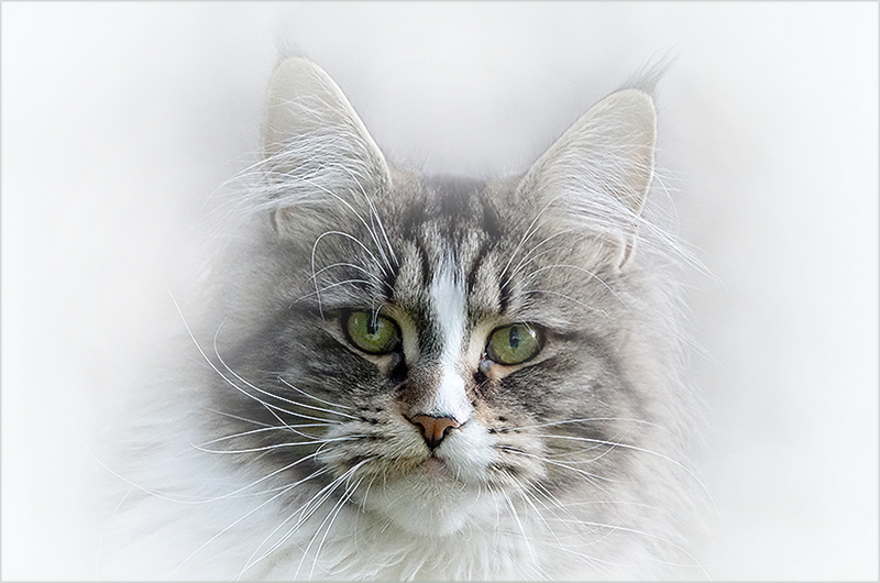 Ein sehr schönes Katzenportrait, das Tierchen spricht zu uns mit seinem süßen Gesichtchen und seinem lieblichen Blick, der uns tief berührt. Auch sehr schön gestaltet und schönes Licht- Farbverhältnis. Das Bild verströmt Ruhe, Harmonie und Frieden.