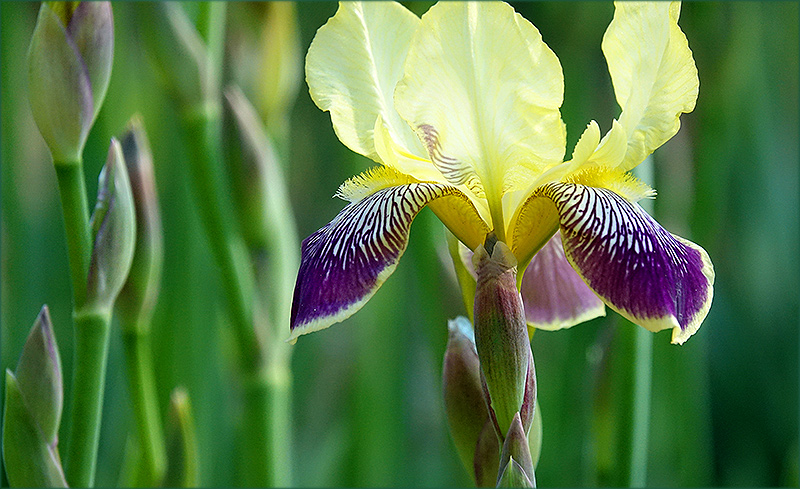 Eine wunderschöne Blüte, auch der schöne - mit Knospen, die sich bald öffnen werden, bewachsene grüne Hintergrund - der sie farbenfroh zur Geltung bringt.