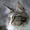 Sie sieht so süß und friedlich aus und verströmt eine wohltuende Harmonie. Ihre Augen sind lieblich klar und voller Wachsamkeit geöffnet, die Ohren lauschend aufgerichtet. Die Katze hat ein sehr schönes hell- bis dunkelgrau und weiß gemischtes Fell, sehr schöne weiße Grannen ums Stubsnäschen und Mäulchen herum, ist gesund und mit sich selbst zufrieden. Das ganze Bild ist erfüllt von Herzenswärme und Liebe. Der hell- bis bläulich dunkelgrau gefleckte Hintergrund bringt das Tierchen schön zur Geltung. Auch ein schönes Licht- Farbverhältnis.