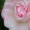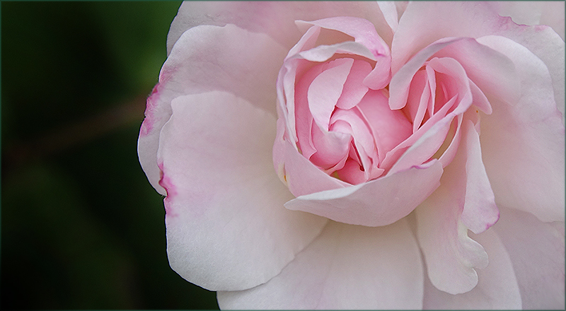 Ein wunderschönes zartes Rosa, sehr schön die Blüte platziert. Der dunkel- mit leicht hellerem grün gefleckte Hintergrund links im Bild, bringt die Rose schön zur Geltung. Das ist Sonnenschein, der sich in unserer Seele ausbreitet, Liebe pur.