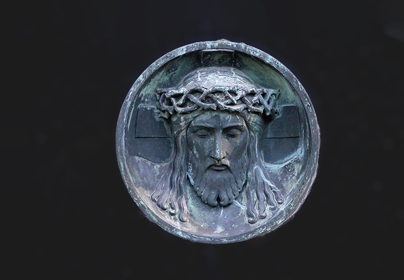 Es ist ein sehr schönes Kunstwerk, es stellt die vollkommene Gewaltlosigkeit dar, Liebe und gleichzeitig die Qual, die trotz aller Liebe zu Gott, zu den Menschen und den Tieren einen ereilen kann. Jesus hat mit seinem Leben diese Liebe und Gewaltlosigkeit vorgelebt, und ohne sich zu wehren seinem Schicksal, als von Gott so gewollt hingegeben. Es zeigt auch, dass man als Einzelmensch vollkommen hilflos ist, wenn eine Gruppe von Menschen auf einen losgeht...Der dunkele Hintergrund bringt dieses Jesusbild schön zur Geltung.