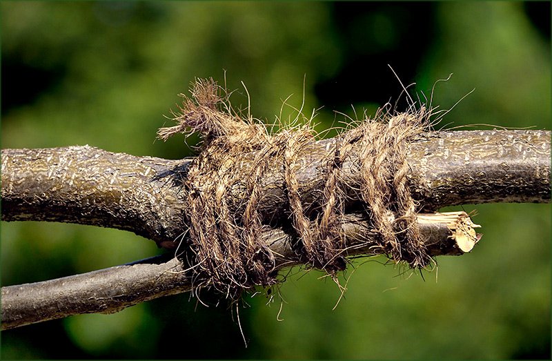 Dieses Kunstwerk hier hat mich zum erneuten Nachdenken angeregt. Es ist bei mir so, dass ich sehr schnell in Dingen, die jemand mit den Händen herstellt ein Kunstwerk sehe, oder erkenne, ohne, dass ich über Kunst theoretische Kenntnisse besitze. Nun sind mir bei dem Bild noch ganz andere Gedanken gekommen, es könnte auch sein - man sieht ja von dem Ganzen nur einen kleinen Ausschnitt - dass jemand mithilfe von zwei Hölzern und einem Hanfseil ein technisches Problem gelöst hat, und nichts besser geeignetes zur Verfügung hatte, oder sogar das Hanfseil und das Holz als umweltfreundiche Hilfsmittel benutzt hat. Ich bin im Lösen von technischen Problemen mit irgendwelchem Material, das ich gerade zur Verfügung habe, sehr erfindungsreich und habe viele Probleme auf diese Weise gelöst, oft nur mit Kordel, Draht und anderen Sachen, die sich in einer Schublade, oder im Keller befanden. Dabei entfaltet sich auch Kreativität und ich denke manchmal danach, dass es sich um ein Kunstwerk handelt, bin über den jetzigen Zustand meines Wohnbereichs sehr glücklich, weil ich mich endlich daran gegeben habe, alles so zu gestalten, dass ich mich wohlfühle, es wurde ja damals bei meinem Umzug alles von anderen ohne mein Dabeisein aufgestellt, ich hab das jahrelang so gelassen, aber ich verspürte den Wunsch, die vorhandenen Sachen so zu stellen, und zu vervollständigen, dass ich Zeit einspare, indem ich nicht mehr alles in Ecken aus zusammenliegenden Gegenständen herauskramen muss, und dann schon vorher die Lust verlor, etwas Wichtiges zu erledigen und es deshalb aufschob. So ist bei mir eine wunderbare Harmonie im Wohnbereich entstanden.