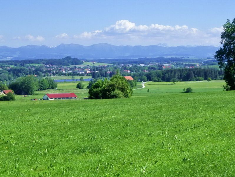 Allgäu im Maiengrün, Hintergrund Alpen