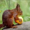 Eichhoernchen mit dem Apfel