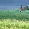 Sehr kunstvoll das Bild, was Licht und Farbe betrifft. Schön zu sehen, wie das springende Kaninchen auf den Vorderpfoten landet und die Körperhaltung des Tieres. Die Wiese und der angrenzende Platz, sind dem Licht- Schattenverhältnis entsprechend in drei verschieden farbliche Flächen aufgeteilt. Das Bild vermittelt Ruhe, Harmonie und Frieden.