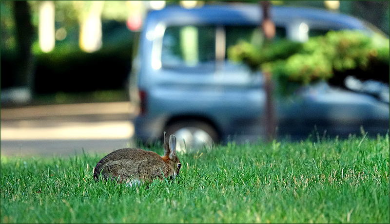 Mir ist aufgefallen, dass Wildkaninchen nicht mehr so scheu sind wie früher, und sie leben mittlerweile auch in Wohngebiete, wenn genügend Grünflächen vorhanden sind. Schöne Lichteffekte auf dem Bild.