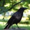 Ich sehe in dem Raben ein weises Wesen, ist das meine eigene Weisheit, die ich auf den Raben projiziere? Kann ich mich als weise ansehen, oder ist das bei mir eher etwas Oberflächliches? Bei diesen Gedanken drängt sich wieder der Vergleich auf, das will ich aber auch nicht...Auf jeden Fall ein sehr schönes Bild, der Rabe auf dem bläulich grauen Steinbrocken im Mittelpunkt vor dem schönen sonnigen teils grün bewachsenen Hintergrund. Auch ein Bild der Harmonie und des Friedens.