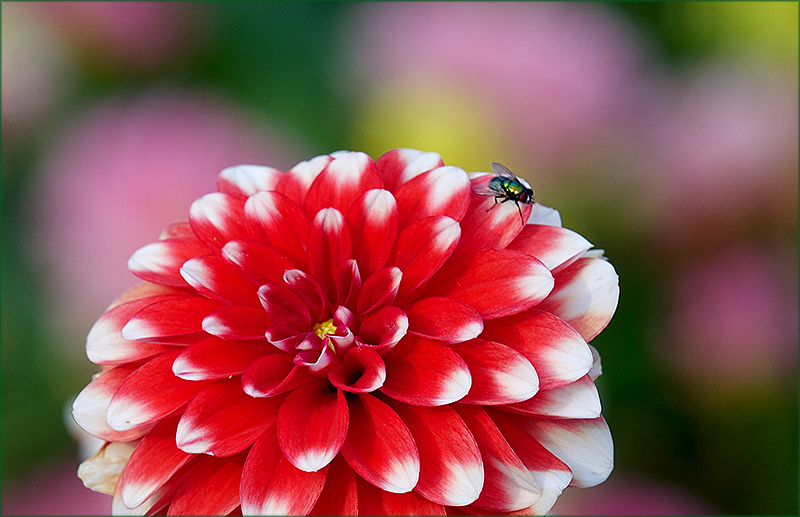 Eine wunderschöne Farbkombination, die weißrote Dahlie