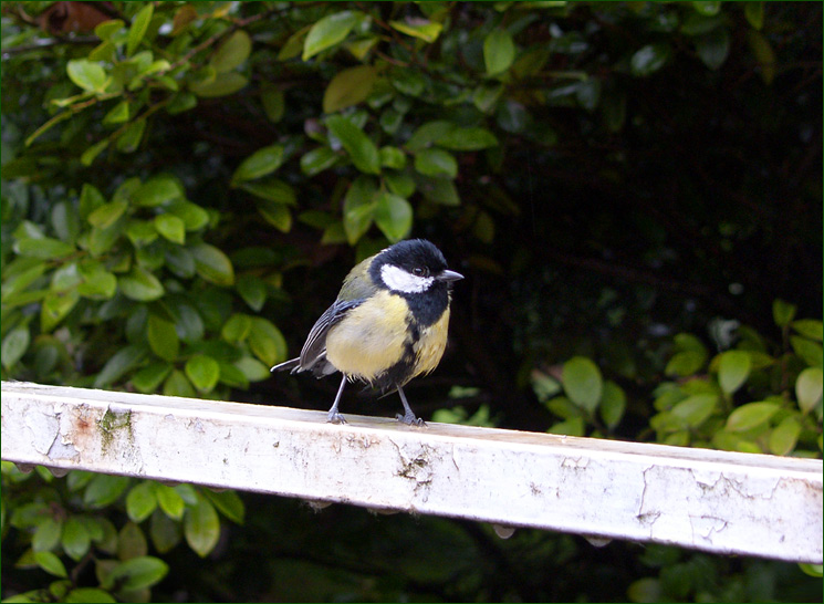 Die Meise fliegt ja wieder weg und schüttelt so die Regentropfen von ihren Federn.