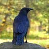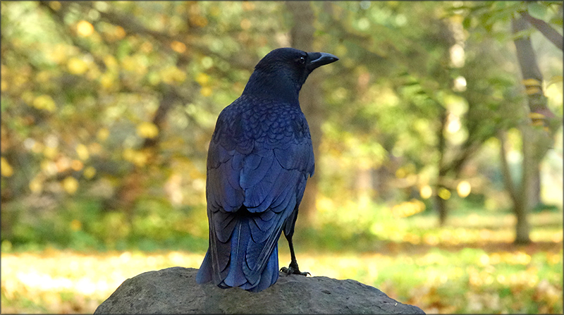 Der Rabe auf dem Steinbrocken, im schwarzen blauschimmernden