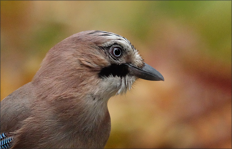 Ein sehr schönes Portrait des Eichelhähers. Schön zu