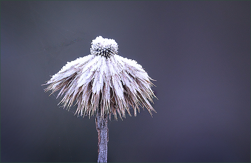 Raureif-Mützchen schön zur Geltung. Das Bild