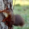 auf der rechten Hälfte des Bildes, bringt das Eichhörnchen