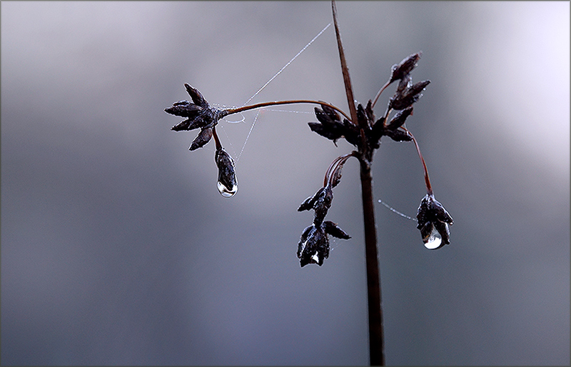 Gefällt mir sehr, Regentropfen, glasklar wie Edelsteine die in Fassungen eingefügt sind. Wenn ich mir die Frage stelle was wertvoller ist, Edelsteine oder Regentropfen, dann ist die Antwort "Regentropfen". Edelsteine können als Schmuckstücke, manchem lieb sein, aber sie können kein Leben hervorbringen, sie sind tot. Wenn ich an einem abgelegenen Ort bin, und einen Schatz von Edelsteinen gefunden habe, aber durstig bin, mein Wasservorrat aufgebraucht ist, dann spüre ich, wie wertlos die Steine aufeinmal sind. Sie können als Schmuckstücke sehr schön sein, können im Sonnenlicht glitzern und funkeln, können aber nicht meinen Durst stillen. Ich würde den ganzen Schatz für ein Glas Wasser hergeben.